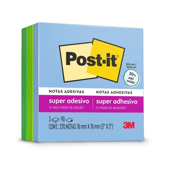 Bloco Notas Adesivas Post-it 3 Blocos 76mm x 76mm 270 folhas - 3M