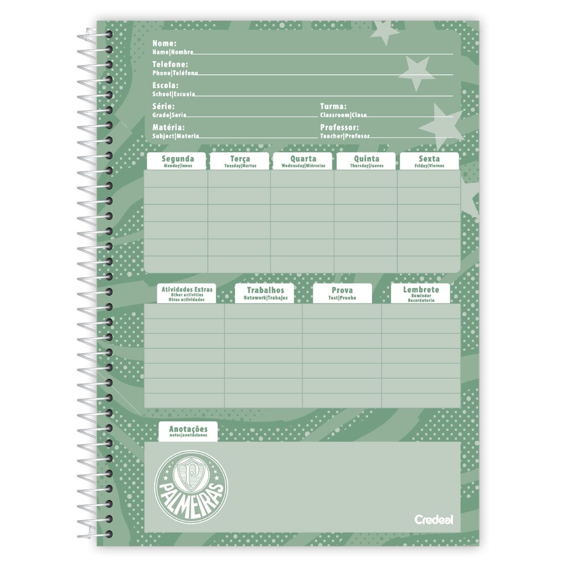 2. Caderno 10 Matérias Universitário Espiral Palmeiras - Credeal