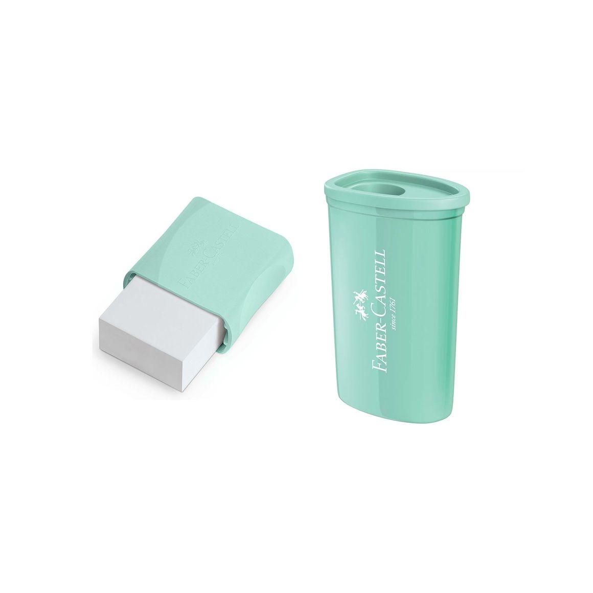 Kit Apontador com Depósito + Borracha Capa Plástica - Verde Pastel - Faber-Castell