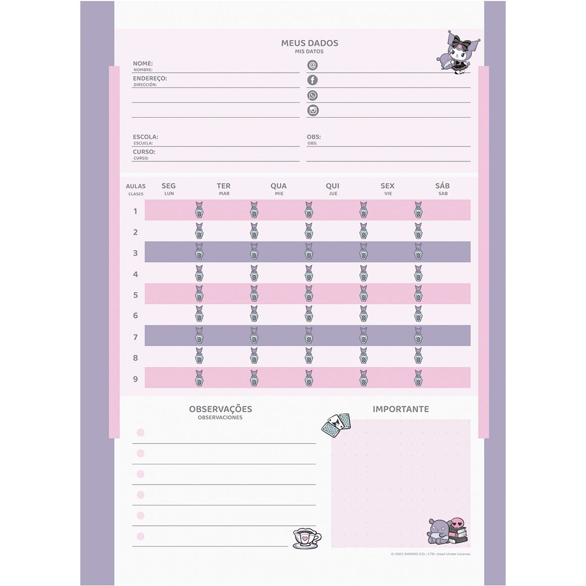 2. Caderno 10 Matérias Universitário Espiral Kuromi - Jandaia